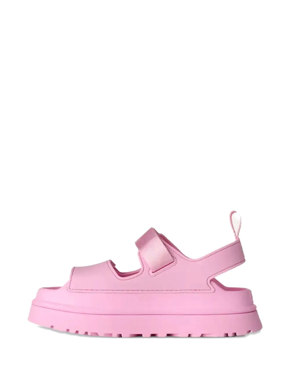 Sandali rosa Goldenglow di UGG in poliestere con punta tonda aperta, chiusure a strappo e plateau.