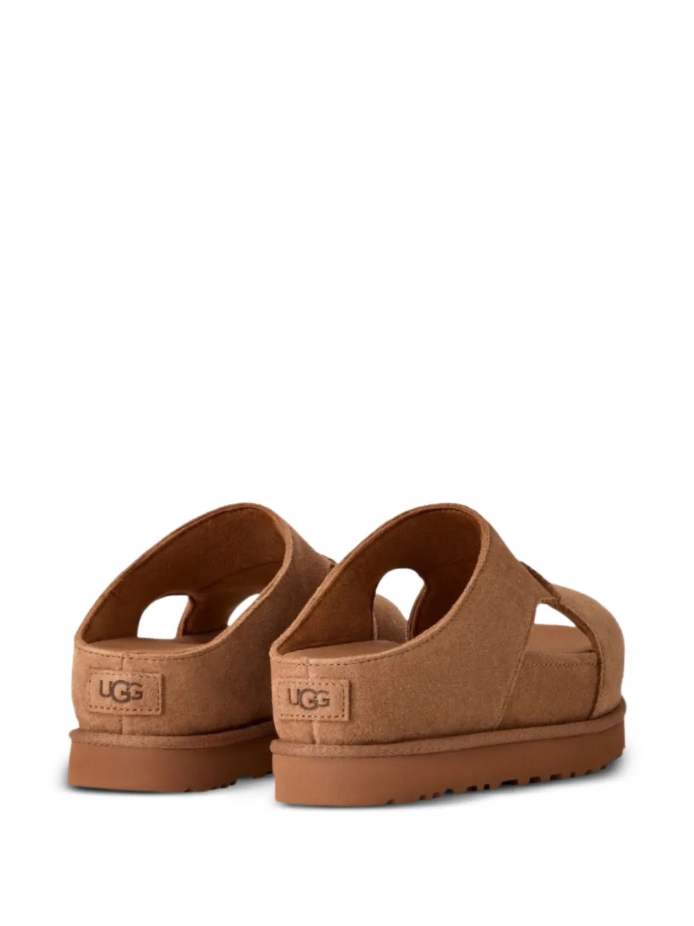 Sandali castagna Goldenstar Hi di Ugg in pelle con dettaglio cut-out, design slip-on, punta aperta, plateau alto e logo posteriore.