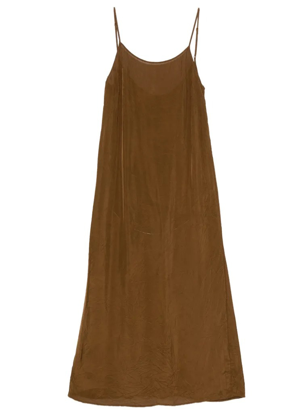 Abito lungo mostarda Anaya di Uma Wang in viscosa e viscosa, spalline sottili, orlo dritto e stile sottoveste.