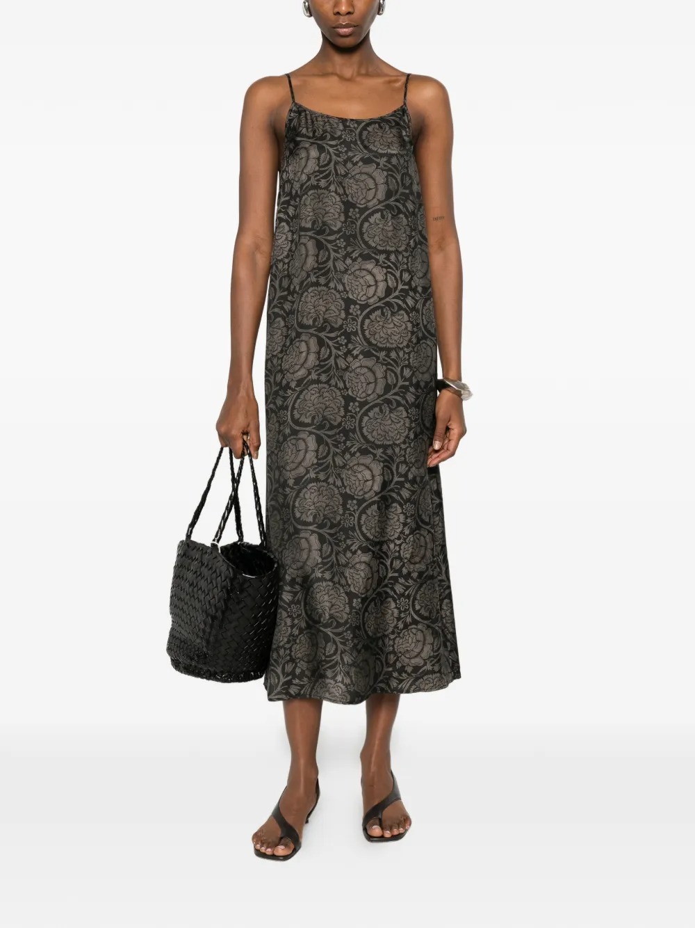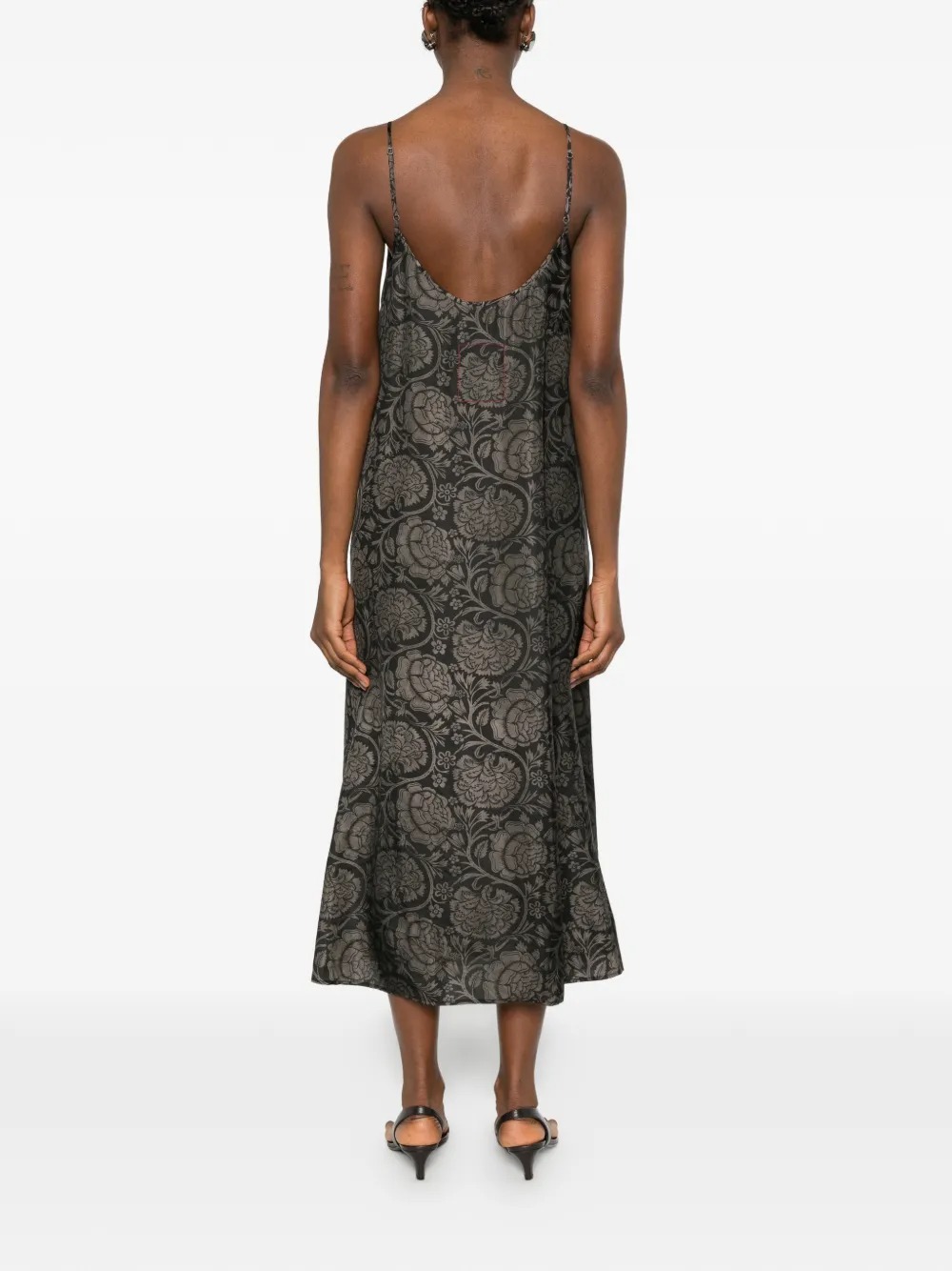 Abito lungo nero Anaya di Uma Wang in cupro e viscosa, spalline sottili, orlo dritto e stile sottoveste.