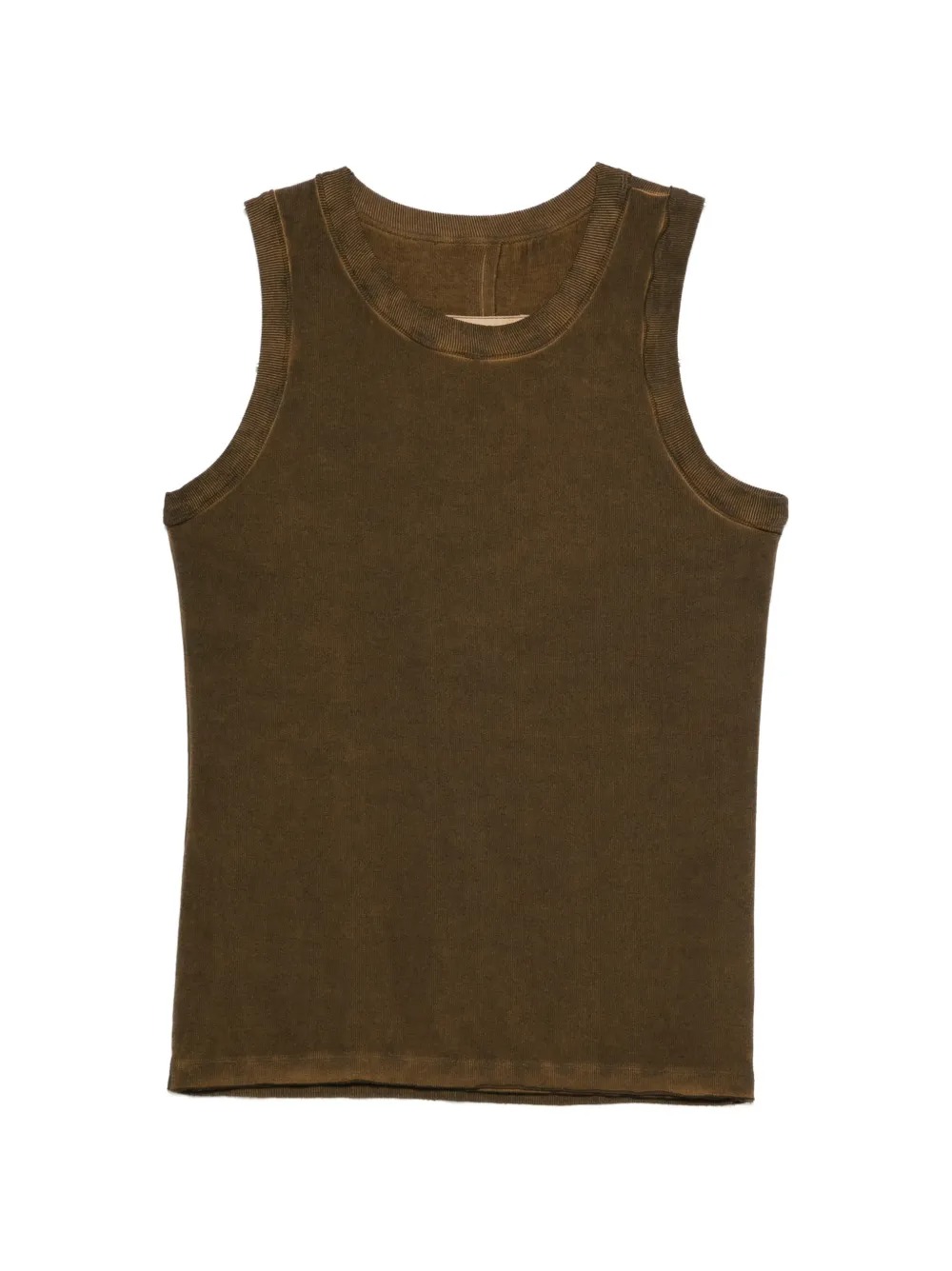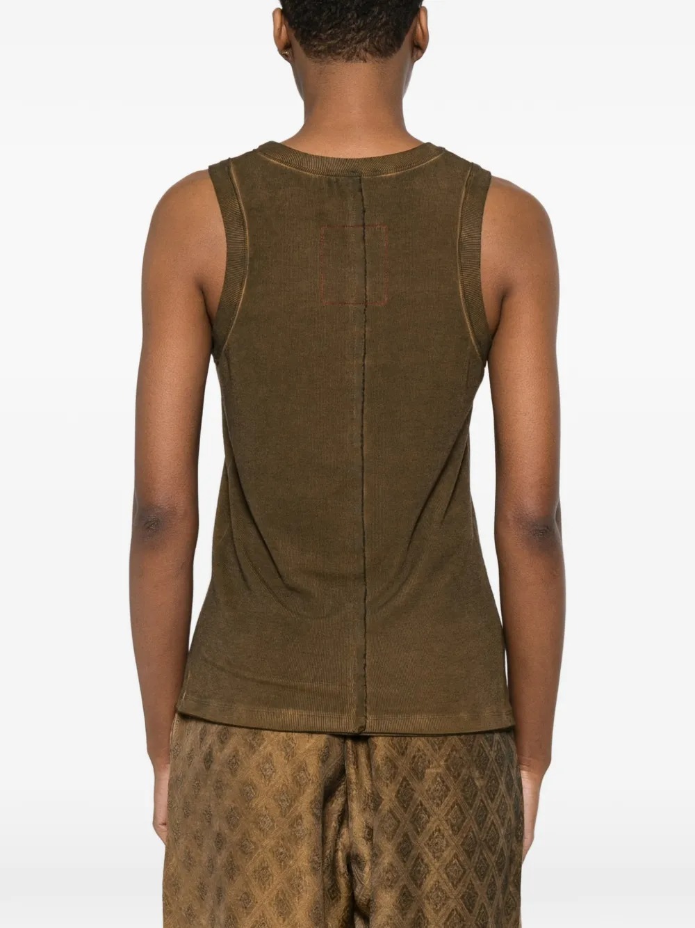 Top mostarda Ti di Uma Wang in viscosa con scollo rotondo, senza maniche e orlo a coste.