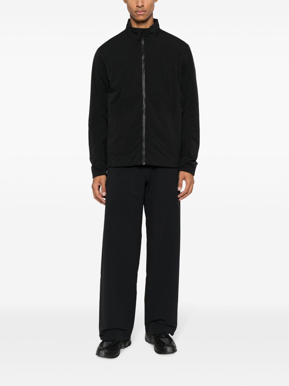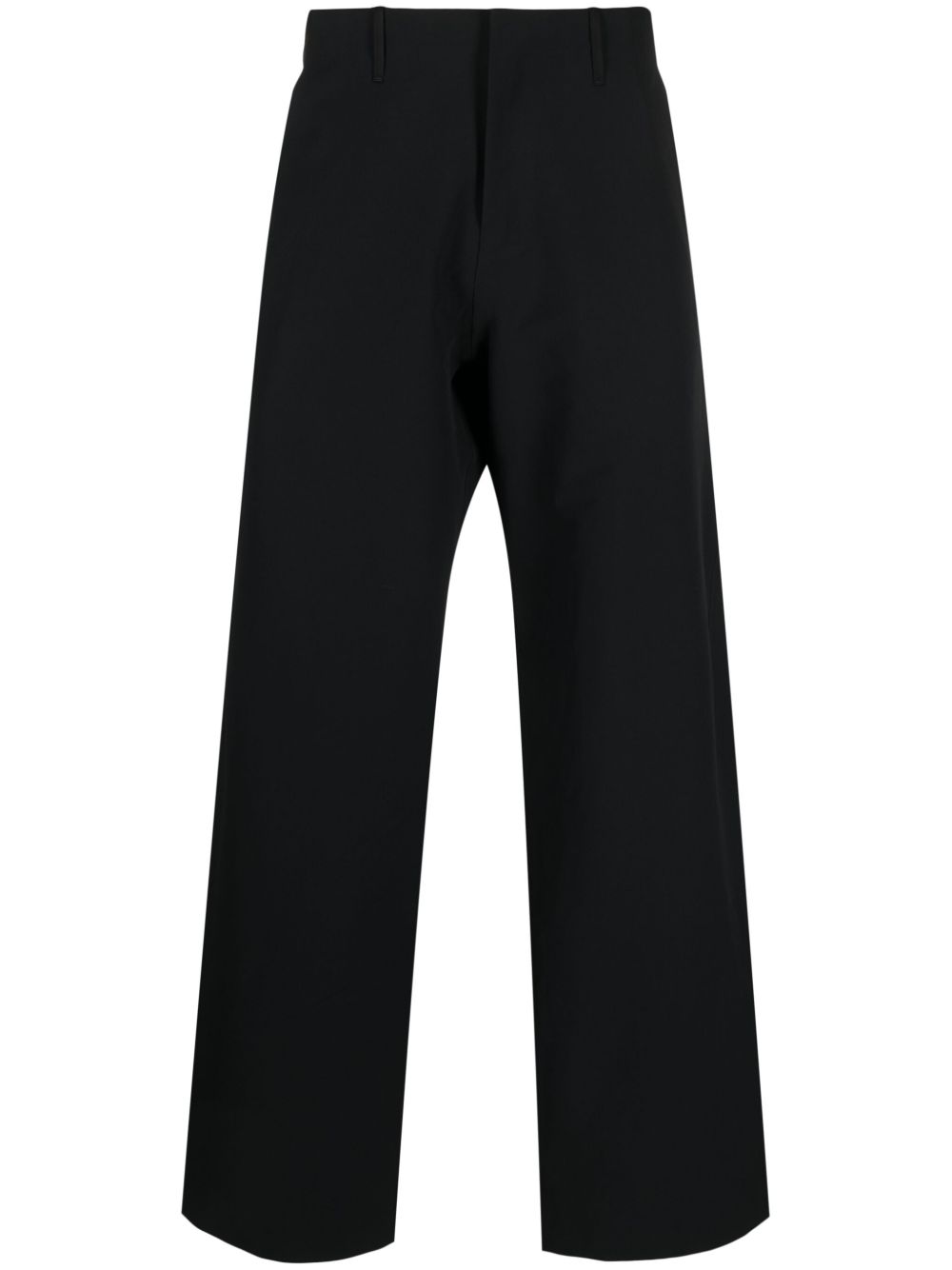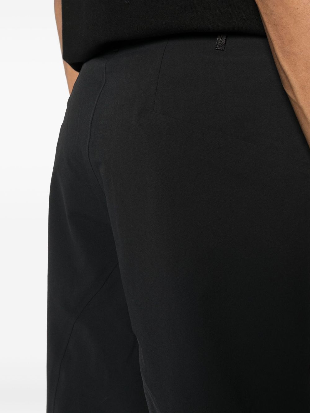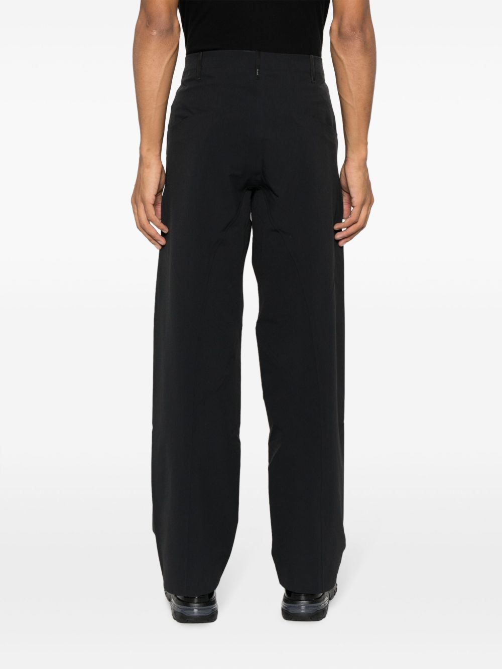 Pantaloni neri Corbel di Veilance con vita con passanti, chiusura frontale e orlo dritto.