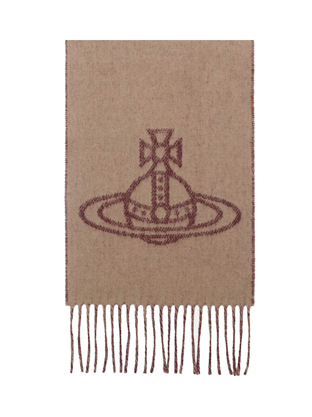Sciarpa Single Orb Double di Vivienne Westwood in morbida lana con frange presenta un "Line Orb" su entrambi i lati, in omaggio all'estetica della Maison sempre tesa a rivoluzionare creativamente la tradizione.